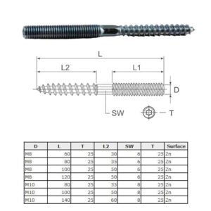 Dowel Bolts Double Head Sided M8 M10 M20 Furniture Hangers Bolts