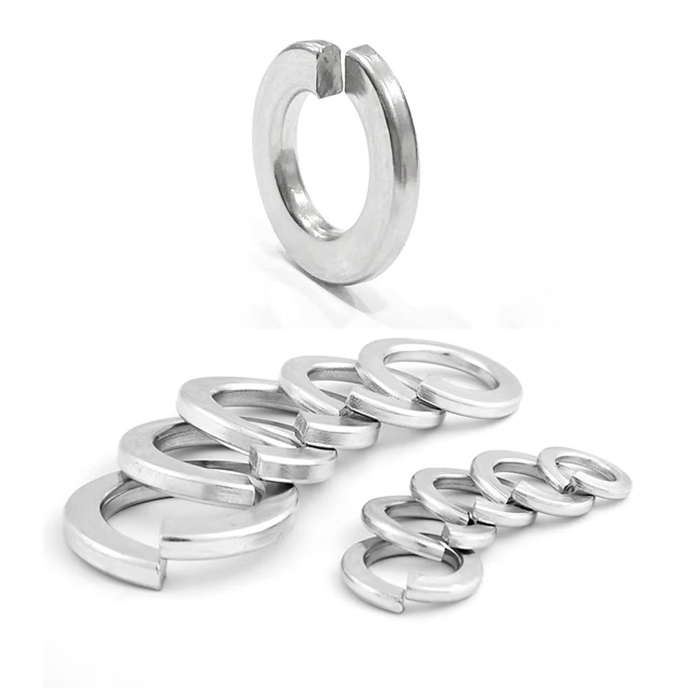 Spring lock washers, often manufactured to DIN 127 and ASME B18.21.1 standards, are critical components used to maintain bolt tension and resist loosening due to vibration or dynamic load. Their helical shape allows them to exert constant spring pressure between the nut and substrate, providing a locking effect in bolted joints.